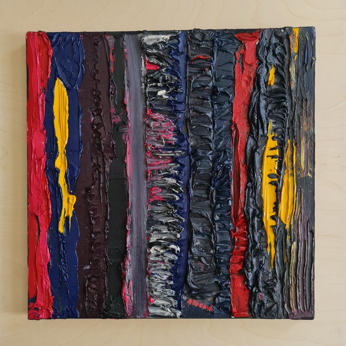 techniques mixtes sur panneau en bois . HUILE ET ACRYLIQUE.